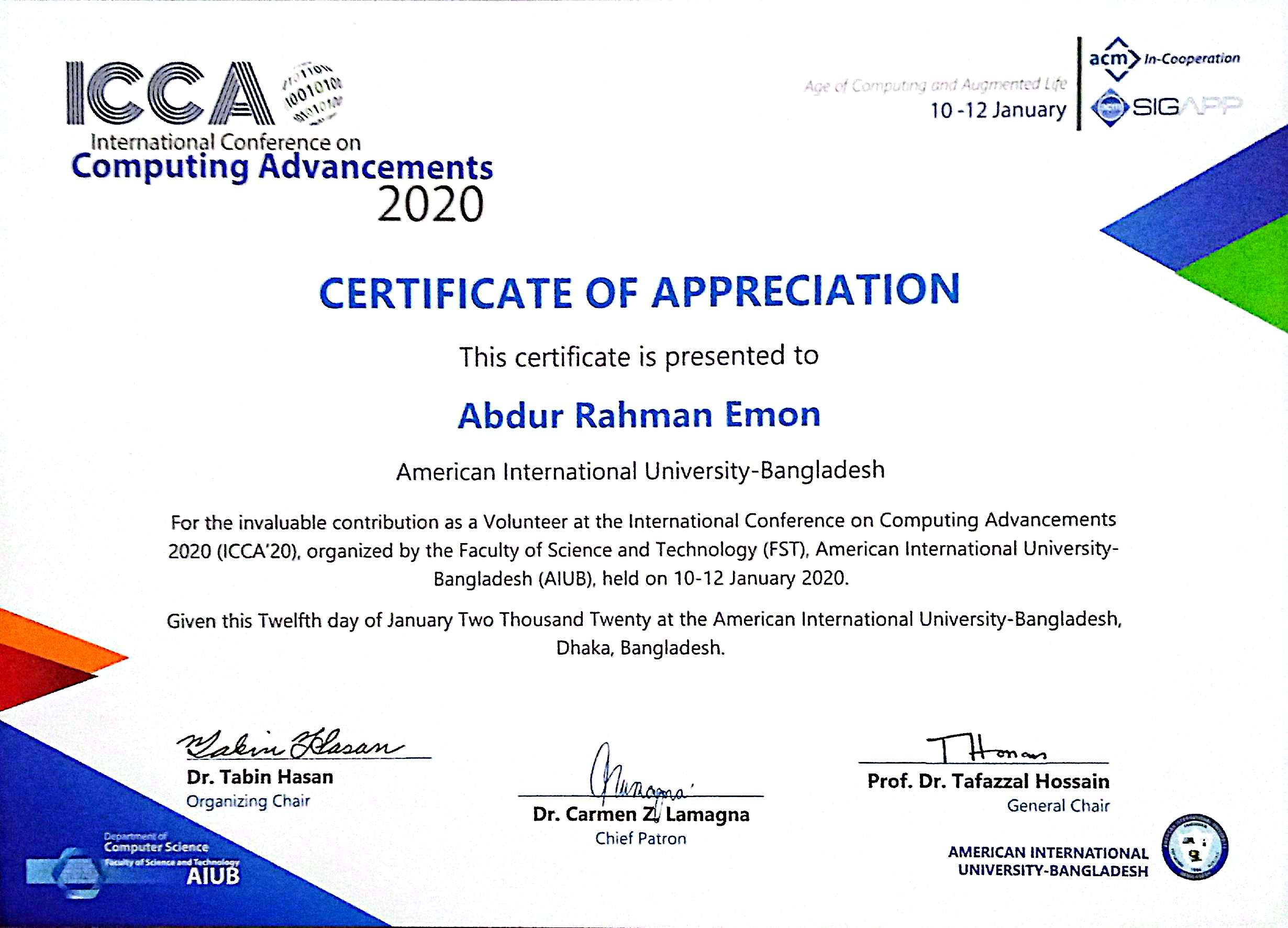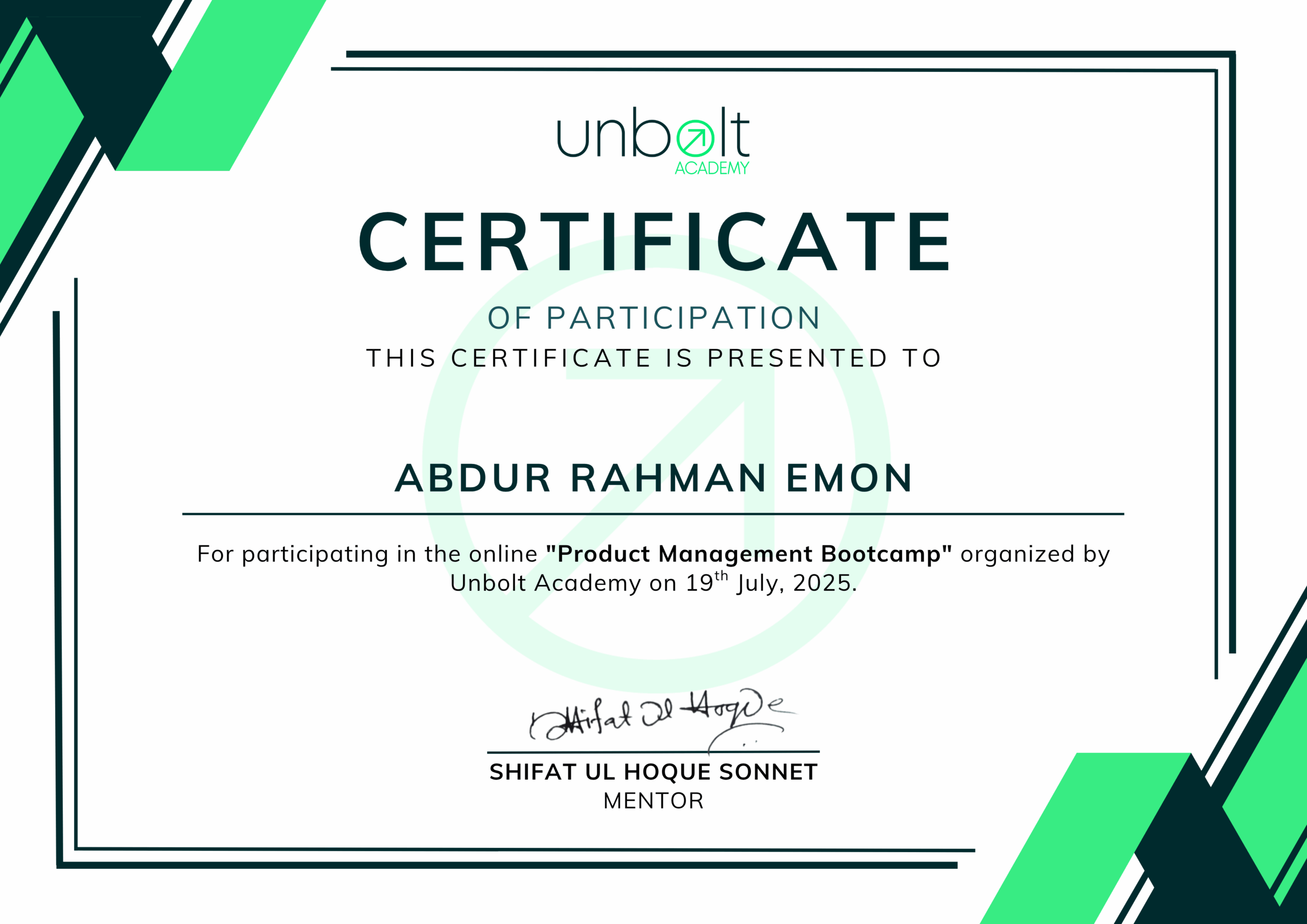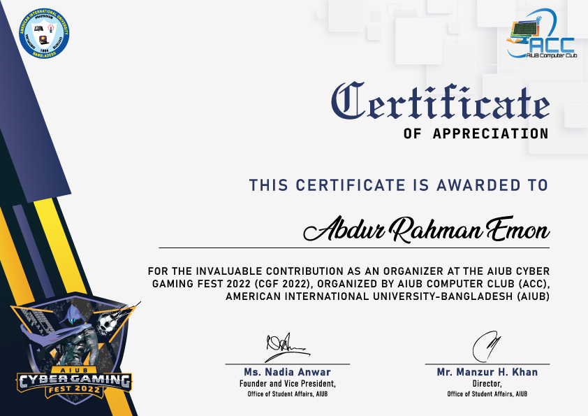 Achievements scroll to continue AllAcademicsExtra Curricular ActivitiesCoursesSummits & ConferencesOthers Dr. Anwarul Abedin Leadership Award at 21st Convocation of AIUB AI & Agility: A Comprehensive Introduction - Scrum Alliance Scrum Fundamentals Certified (SFC™) - SCRUMStudy Introduction to Generative AI: Art of the Possible - AWS Lead Like an Agilist: Time, Teams & Transformation - Startise PMI Certified Professional in Managing AI (PMI-CPMAI)™ - Project Management Institute Product-Led Fundamentals - ProductLed AI for Product Management - Pendo.io Google Cloud Security Summit 2025 Product Analytics Certification - Pendo.io Product Management Bootcamp - unbolt Academy AI Agent Development Workshop - Ostad AWS Summit 2025 (India) Next.js CONF 2023 Product Management - Great Learning Product Life Cycle Management - Great Learning Project Management - Great Learning Product Management 101 - Simplilearn Artificial Intelligence Micro-Certification - Product School PMP Certification: Project Management 101 - Simplilearn Art of Job Searching & Applications - Bohubrihi Product-Led Growth Micro-Certification - Product School Best Student Performance Award 2015 (SSC) - BSB Foundation Best Student Performance Award 2012 (JSC) - BSB Foundation Certificate of Excellence Award 2012 (JSC) - Panjeree AIUB Cyber Gaming Fest 2022 Jarvis 4.0 NASA International Space Apps Challenge 2023 Digital Bangladesh Mela 2023 International Conference on Computing Advancements 2020 NASA International Space Apps Challenge 2022 AIUB Cyber Gaming Fest 2019 Cyber Security & Social Awareness Program 2022 JoyJatra Tech Fest 2021 HUAWEI The Future of Mobile App Industry BUP Techsurgence 2019 YWCA 3rd Inter School Debate Competition 2010 MGBSDC Debate Competition and Workshop 2010 Fine Arts Competition 2007 NBPSC Poetry Competion 2007